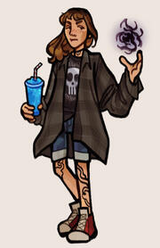 Used to be a preppy volleyball girl but has fully changed her appearance + exclusively goes by Jinx rather than her given name